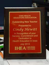 m a puzzled look to an AH-HA and to know that they got it!” Her hard work must be paying off because Cindy was recently recognized as an Outstanding New Teacher from the Iowa Health Educators Association.