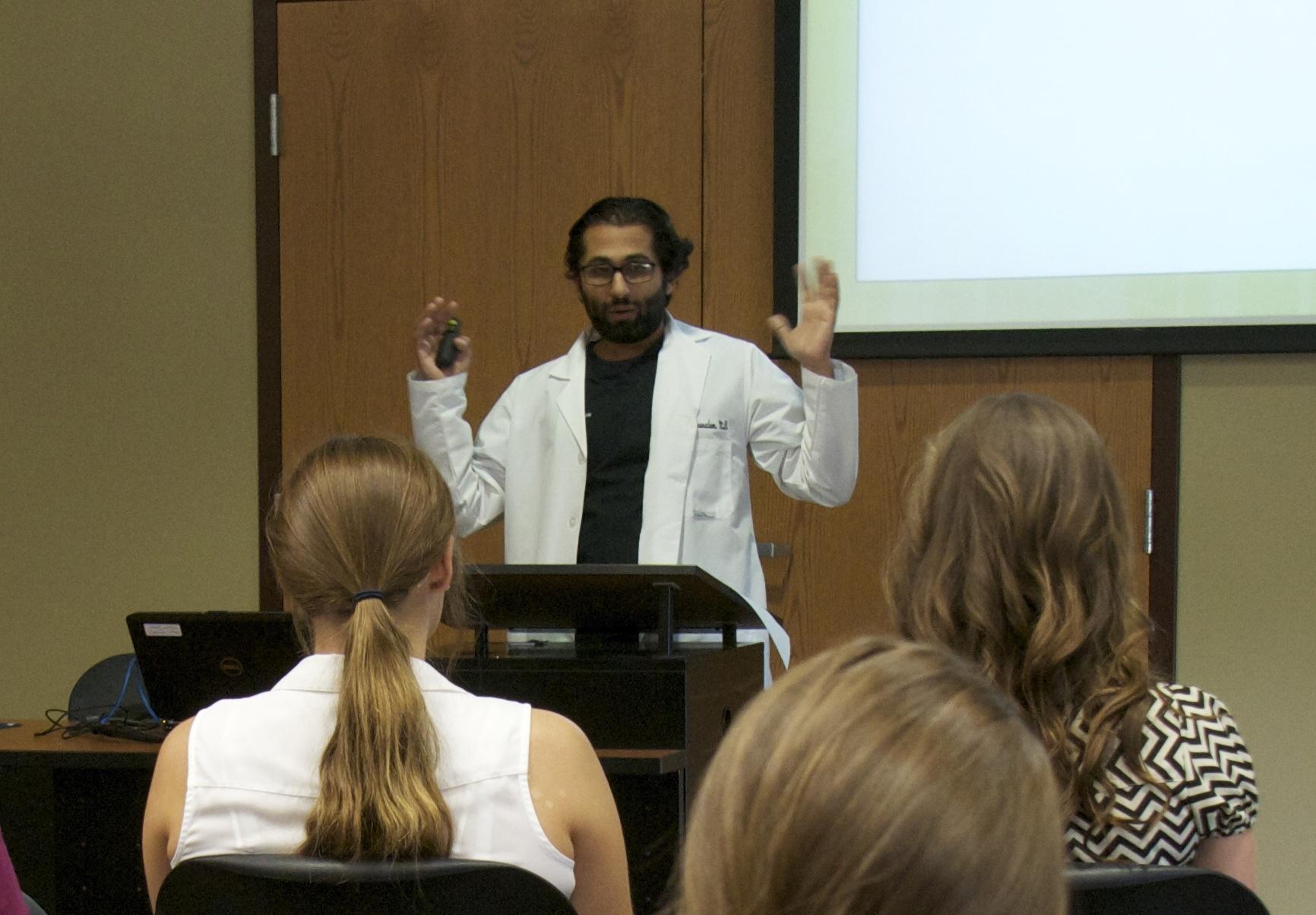 (and humorous) account of obtaining a health career and working in the medical field. Also on hand were the high school students enrolled in the Health Career Exploration Academy, a project made possible through a partnership with Indian Hills and a Legacy grant. It was a wonderful opportunity for these young students to hear the experiences of a respected physician but also to meet and talk to college students who could give them advice and encouragement as well. The Health Career Academy students were surprised during the program when it was announced that the scholarship “exercise” they had participated in earlier in the week was actually a