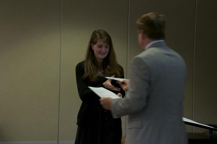 real scholarship contest that was resulting in the award of a $500 scholarship for one of the participants, Jessica Horvath. Once the program was complete, the recipients were sent on their way with “college survival gift baskets” containing among other things; Advil, earplugs, Ramen Noodles, chocolate (all the necessities), as well as our wishes for a successful and enjoyable year at school.